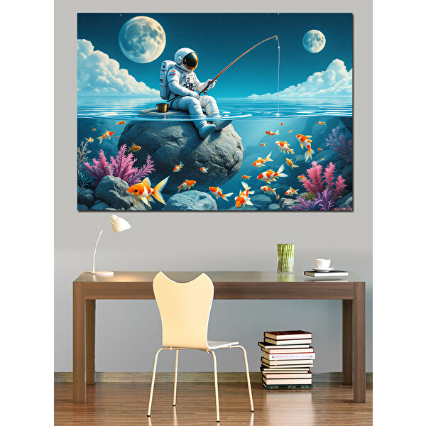 Okyanusta Balık Tutan Adam Dekoratif Kanvas - Mdf Ahşap Tablo