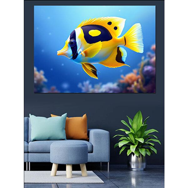 Tablomega Okyanusta Sarı Mavi Balık Dekoratif Kanvas - Mdf Ahşap Tablo 50x70 cm