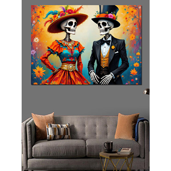 Tablomega Ölüler Günü İskelet Çifti Dekoratif Kanvas - Mdf Ahşap Tablo 50x70 cm