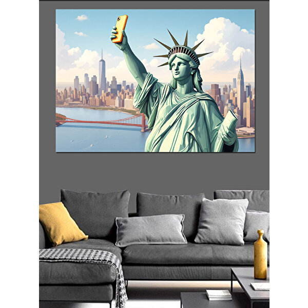 Tablomega Özgürlük Heykeli Ve Şehir Dekoratif Kanvas - Mdf Ahşap Tablo 100x140 cm