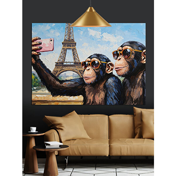 Paris Maymun Selfie Dekoratif Kanvas - Mdf Ahşap Tablo
