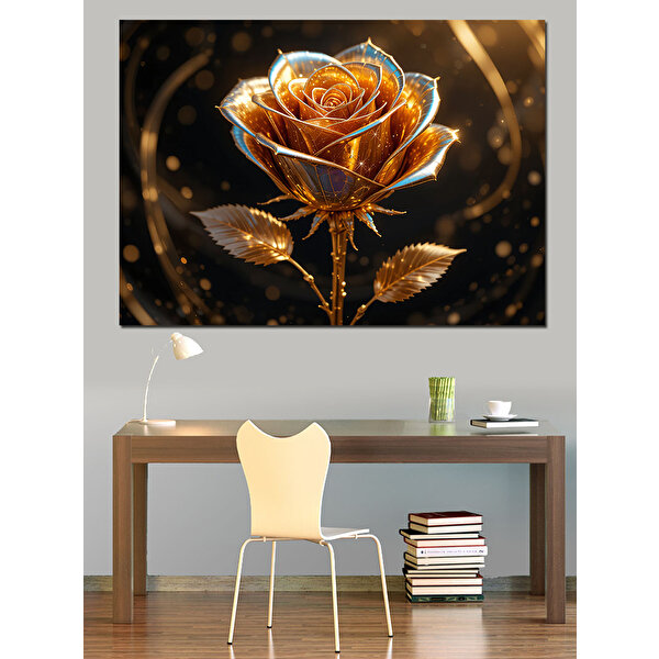 Tablomega Parlayan Altın Gül Deseni Dekoratif Kanvas - Mdf Ahşap Tablo 50x70 cm