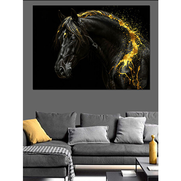 Tablomega Parlayan Siyah Güçlü At Dekoratif Kanvas - Mdf Ahşap Tablo 70x100 cm