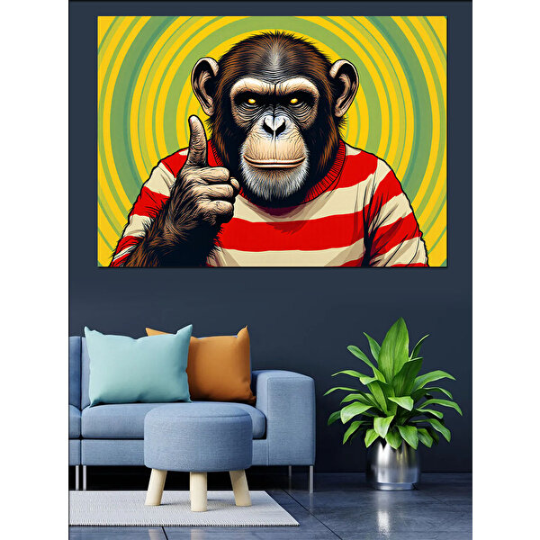 Parmak Sallayan Maymun Dekoratif Kanvas - Mdf Ahşap Tablo