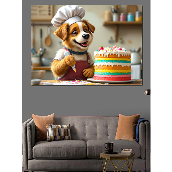 Pasta Yapan Sevimli Köpek Dekoratif Kanvas - Mdf Ahşap Tablo