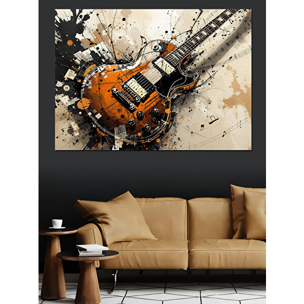 Tablomega Patlayan Elektro Gitar Dekoratif Kanvas - Mdf Ahşap Tablo 70x100 cm