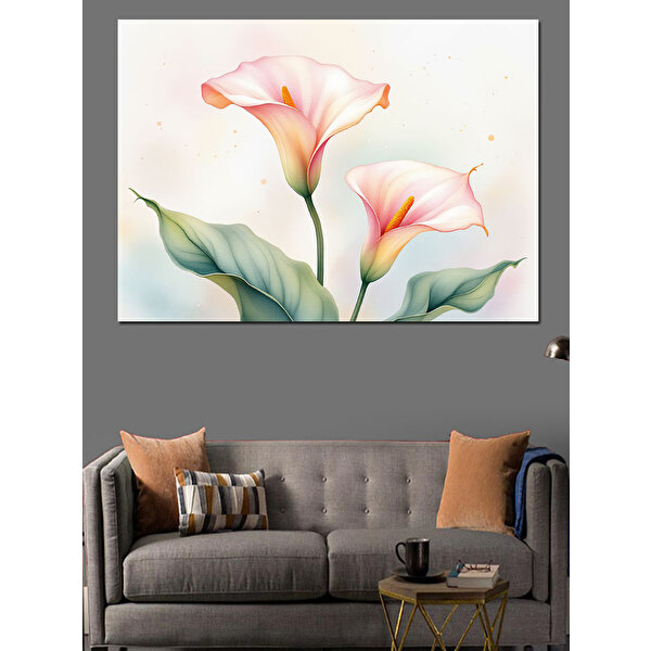 Tablomega Pembe Beyaz Zambaklar Dekoratif Kanvas - Mdf Ahşap Tablo 100x140 cm