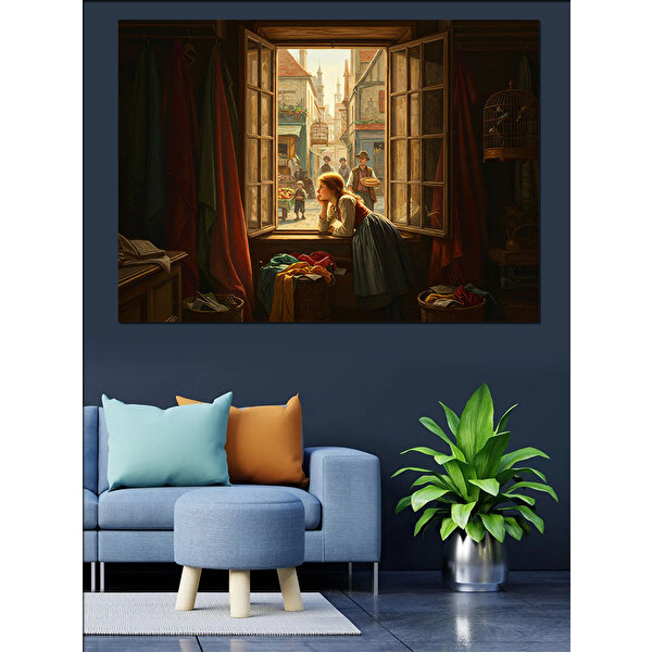Tablomega Pencerede Sabah Güneşiyle Yalnızlık Dekoratif Kanvas - Mdf Ahşap Tablo 50x70 cm