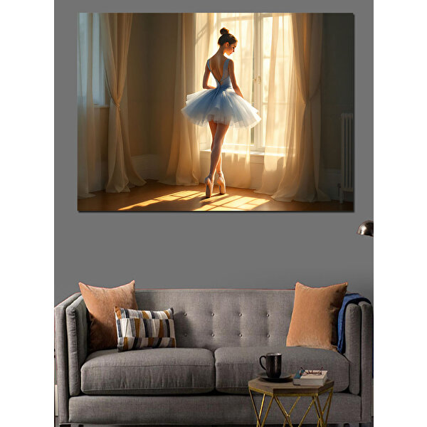Tablomega Penceredeki Balerin Kız Dekoratif Kanvas - Mdf Ahşap Tablo 100x140 cm