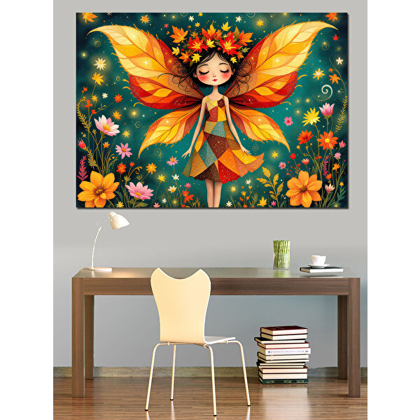 Peri Kız Çiçek Kanatlar Dekoratif Kanvas - Mdf Ahşap Tablo