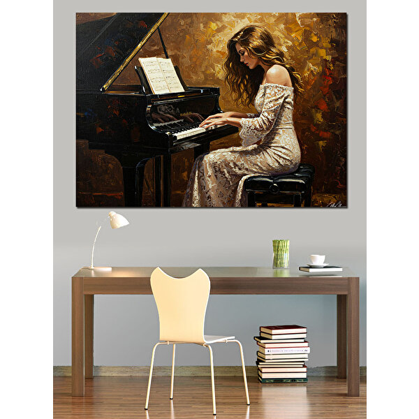 Tablomega Piyano Çalan Zarif Kadın Dekoratif Kanvas - Mdf Ahşap Tablo 70x100 cm