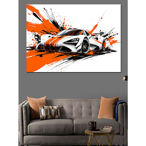 Tablomega Portakal Renkli Yarış Arabası Dekoratif Kanvas - Mdf Ahşap Tablo 50x70 cm