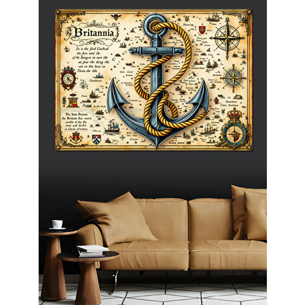 Tablomega Pusula Ve Çapa Haritası Dekoratif Kanvas - Mdf Ahşap Tablo 100x140 cm