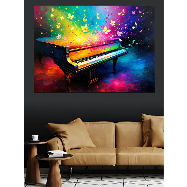 Renk Patlamalı Piyano Tablosu Dekoratif Kanvas - Mdf Ahşap Tablo