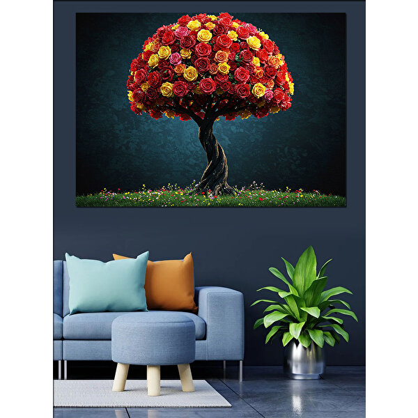 Tablomega Renkli Ağaç Figürü Dekoratif Kanvas - Mdf Ahşap Tablo 100x140 cm