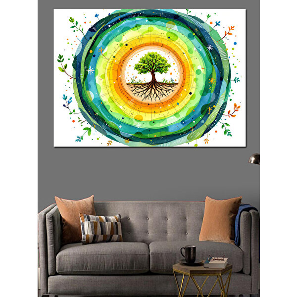 Renkli Ağaç Halkası Dekoratif Kanvas - Mdf Ahşap Tablo