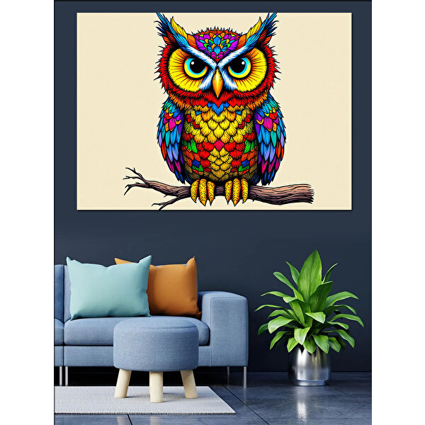Renkli Baykuş Dekoratif Kanvas - Mdf Ahşap Tablo
