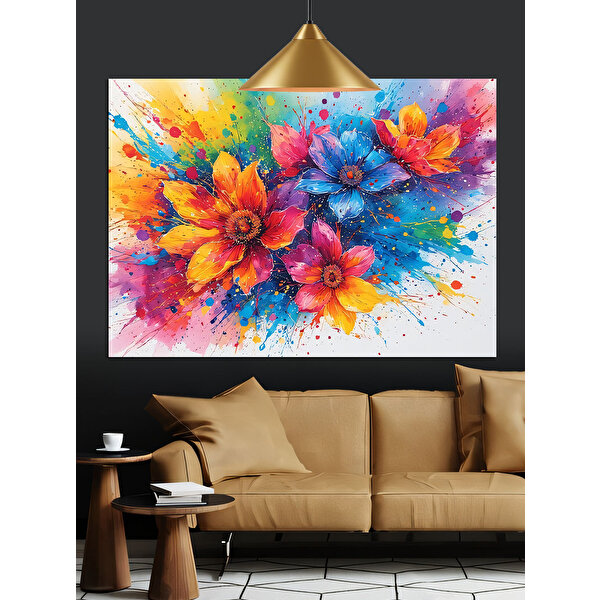 Renkli Çiçek Patlaması Dekoratif Kanvas - Mdf Ahşap Tablo