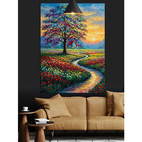 Tablomega Renkli Çiçekli Yol Ve Ağaç Dekoratif Kanvas - Mdf Ahşap Tablo 70x100 cm