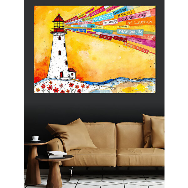 Renkli Deniz Feneri Dekoratif Kanvas - Mdf Ahşap Tablo