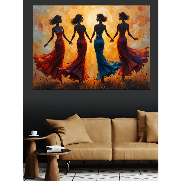 Renkli Elbiseli Dans Kadınlar Dekoratif Kanvas - Mdf Ahşap Tablo