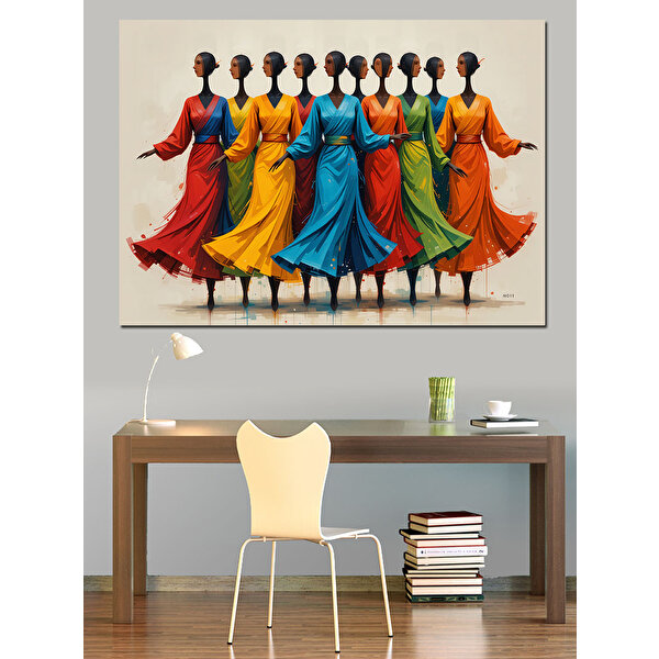 Renkli Elbiseli Kadınlar Dekoratif Kanvas - Mdf Ahşap Tablo