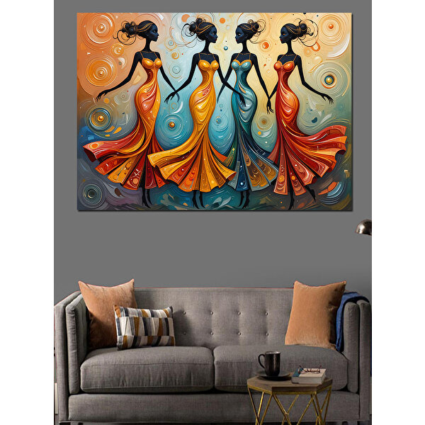 Tablomega Renkli Elbiseli Üç Kadın Dekoratif Kanvas - Mdf Ahşap Tablo 70x100 cm
