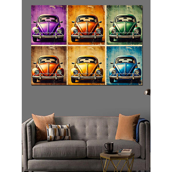Renkli Klasik Araba Duvarı Dekoratif Kanvas - Mdf Ahşap Tablo