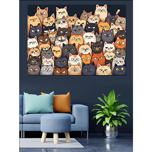 Renkli Komik Kediler Deseni Dekoratif Kanvas - Mdf Ahşap Tablo