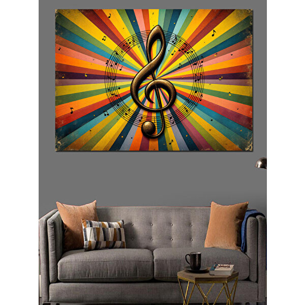 Renkli Nota Sembolü Dekoratif Kanvas - Mdf Ahşap Tablo