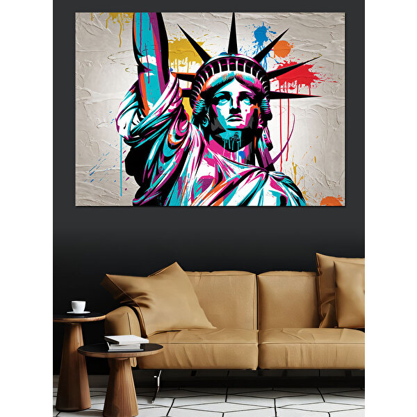 Tablomega Renkli Özgürlük Heykeli Çizimi Dekoratif Kanvas - Mdf Ahşap Tablo 35x50 cm