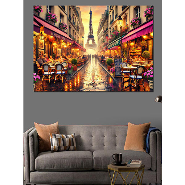 Tablomega Renkli Paris Şehir Sokağı Dekoratif Kanvas - Mdf Ahşap Tablo 100x140 cm
