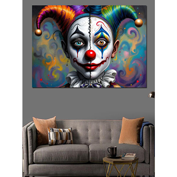 Tablomega Renkli Saçlı Palyaço Yüzü Dekoratif Kanvas - Mdf Ahşap Tablo 35x50 cm