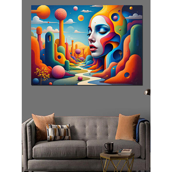 Tablomega Renkli Soyut Kadın Yüzü Dekoratif Kanvas - Mdf Ahşap Tablo 100x140 cm