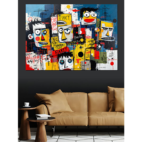Tablomega Renkli Soyut Karakter Deseni Dekoratif Kanvas - Mdf Ahşap Tablo 50x70 cm