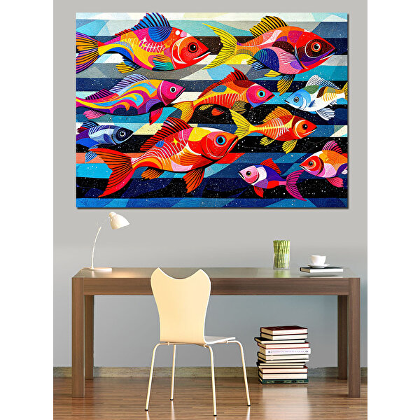 Tablomega Renkli Tropik Balıklar Dekoratif Kanvas - Mdf Ahşap Tablo 100x140 cm