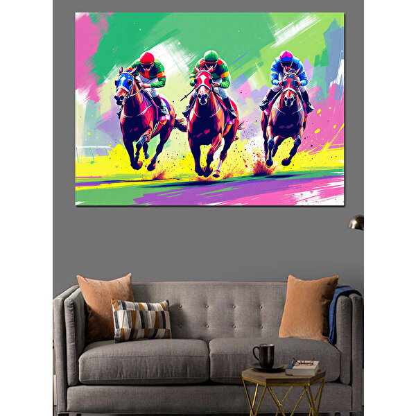 Tablomega Renkli Yarışan Atlı Siluetler Dekoratif Kanvas - Mdf Ahşap Tablo 50x70 cm