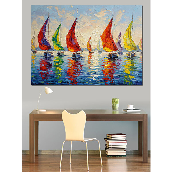 Tablomega Renkli Yelkenli Tekneler Yarışı Dekoratif Kanvas - Mdf Ahşap Tablo 70x100 cm