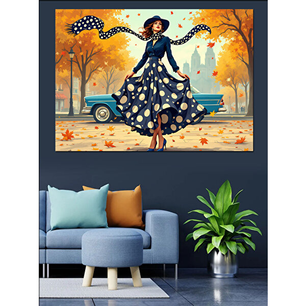 Tablomega Retro Araba Ve Kadın Dekoratif Kanvas - Mdf Ahşap Tablo 100x140 cm
