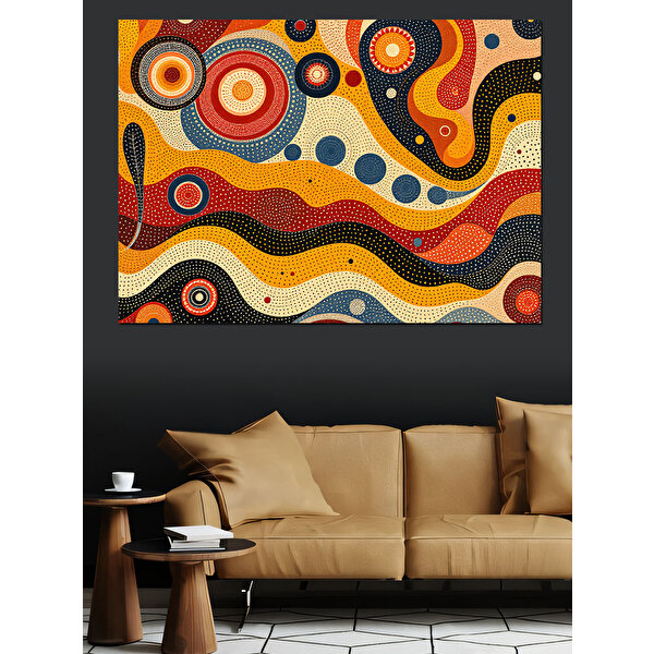 Retro Dalgalar Deseni Dekoratif Kanvas - Mdf Ahşap Tablo