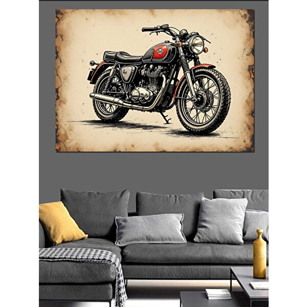 Tablomega Retro Klasik Siyah Motosiklet Dekoratif Kanvas - Mdf Ahşap Tablo 100x140 cm