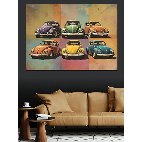 Tablomega Retro Renkli Vosvos Arabalar Dekoratif Kanvas - Mdf Ahşap Tablo 50x70 cm