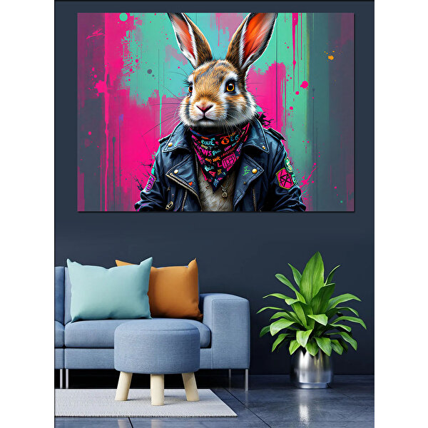 Rocker Tavşan Renkli Arka Plan Dekoratif Kanvas - Mdf Ahşap Tablo