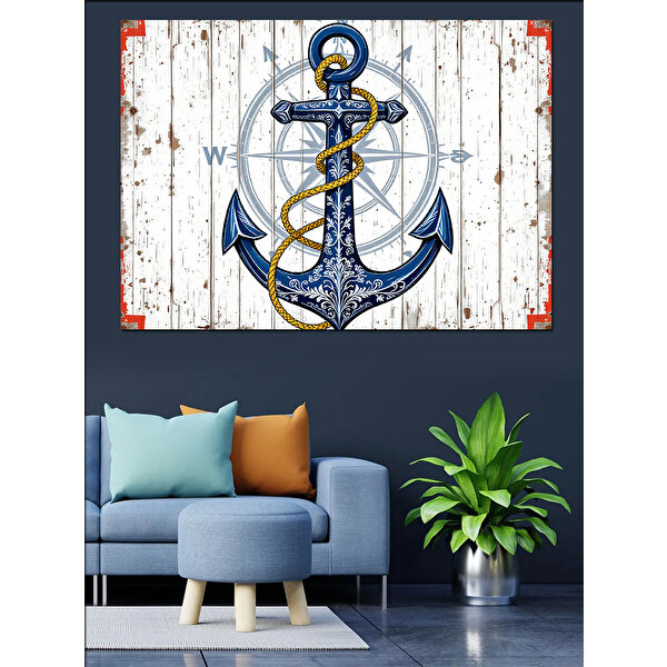 Rustik Ahşap Üzerinde Çapa Dekoratif Kanvas - Mdf Ahşap Tablo