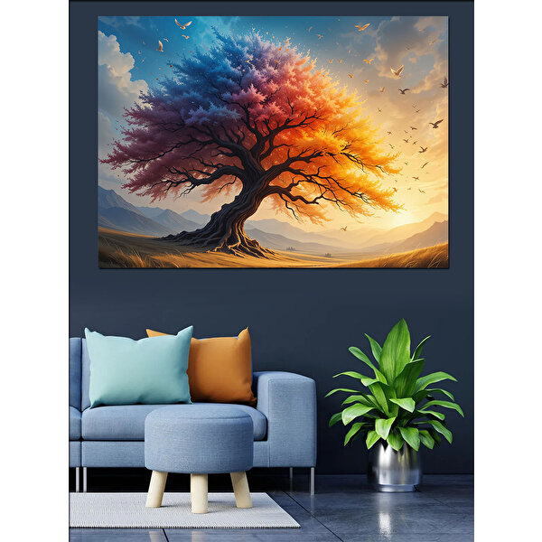 Tablomega Rüzgarlı Sonbahar Ağacı Dekoratif Kanvas - Mdf Ahşap Tablo 70x100 cm