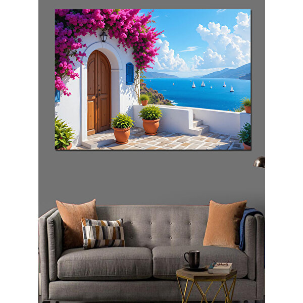 Tablomega Sahil Manzaralı Renkli Ev Kapısı Dekoratif Kanvas - Mdf Ahşap Tablo 100x140 cm