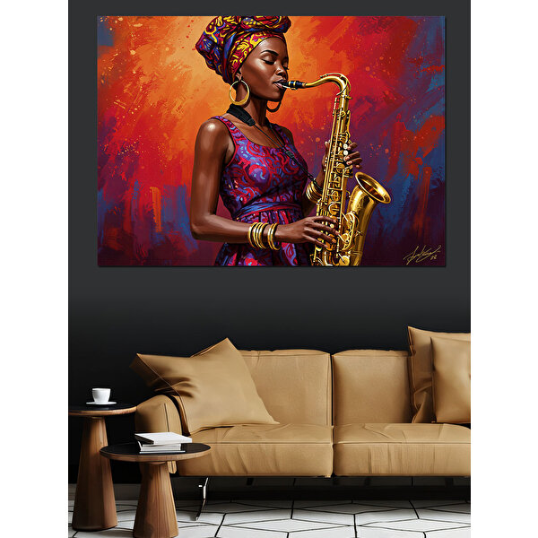 Tablomega Saksafon Çalan Afrikalı Kadın Dekoratif Kanvas - Mdf Ahşap Tablo 50x70 cm