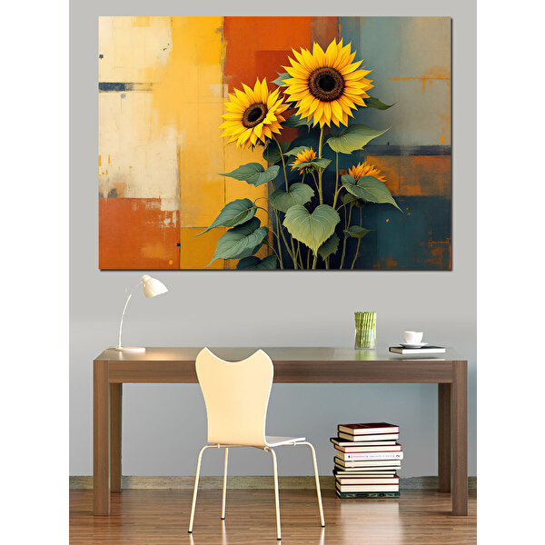 Tablomega Sarı Güneş Çiçekleri Dekoratif Kanvas - Mdf Ahşap Tablo 50x70 cm