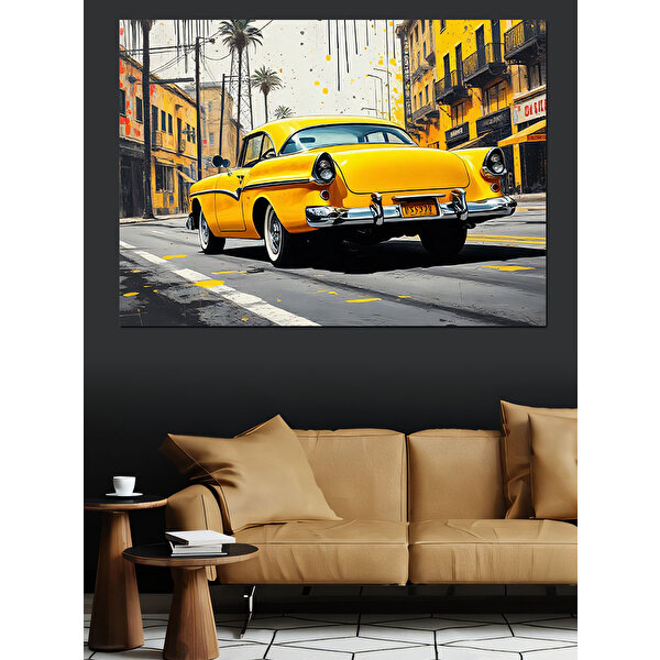 Sarı Klasik Araba Sürüşü Dekoratif Kanvas - Mdf Ahşap Tablo