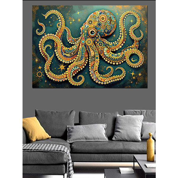 Tablomega Sarı Noktalı Dev Ahtapot Dekoratif Kanvas - Mdf Ahşap Tablo 50x70 cm